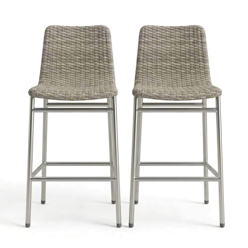 2 Barhocker aus Polyrattan mit Edelstahlgestell, Höhe 100 cm, Beige