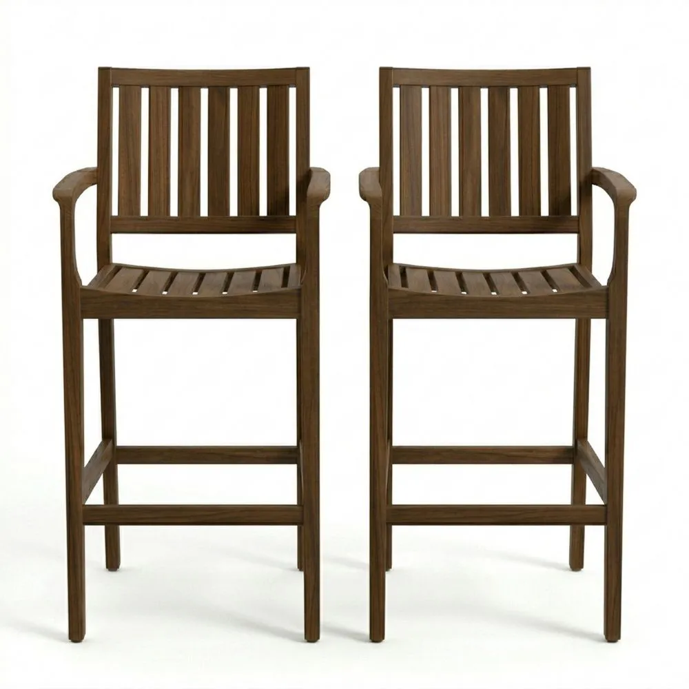 Set aus 2 Hochstühlen aus Massivholz Braun
