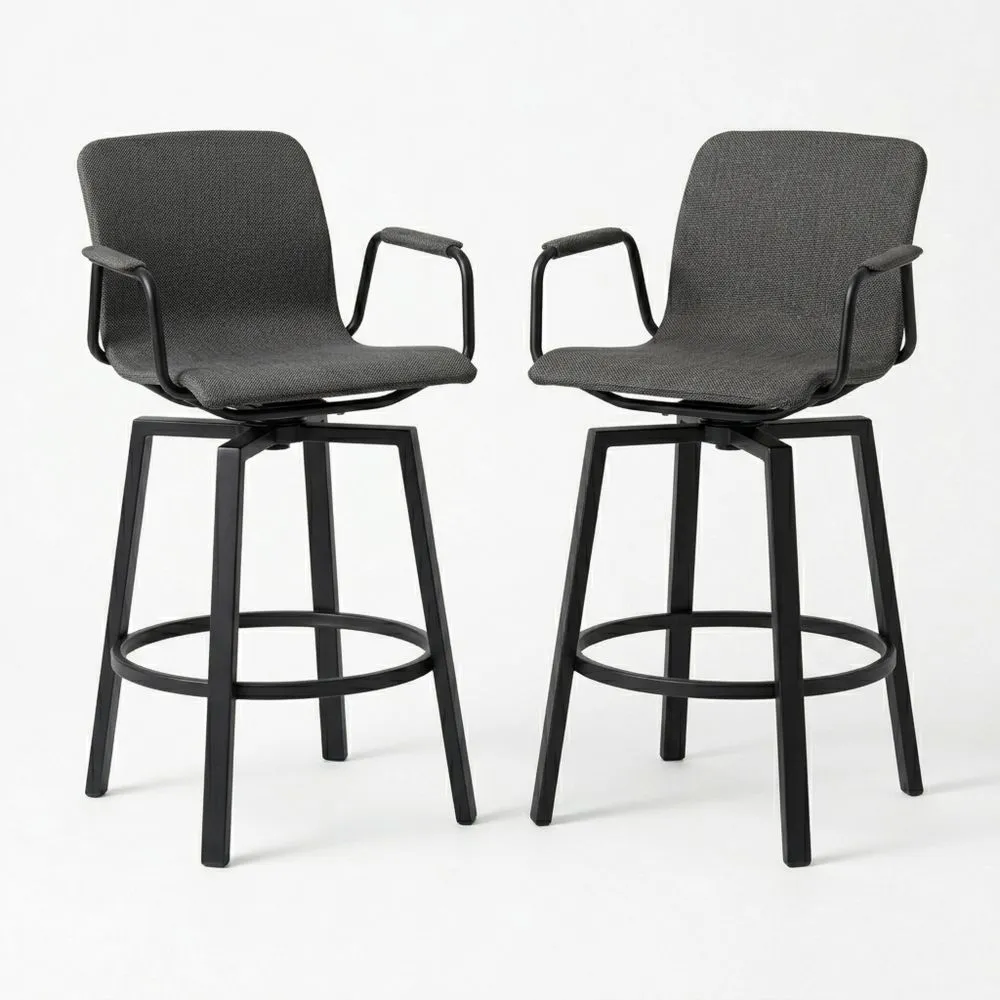 2er-Set Barhocker drehbar mit Armlehnen aus pulverbeschichtetem Stahl und Polyestergewebe Dunkelgrau