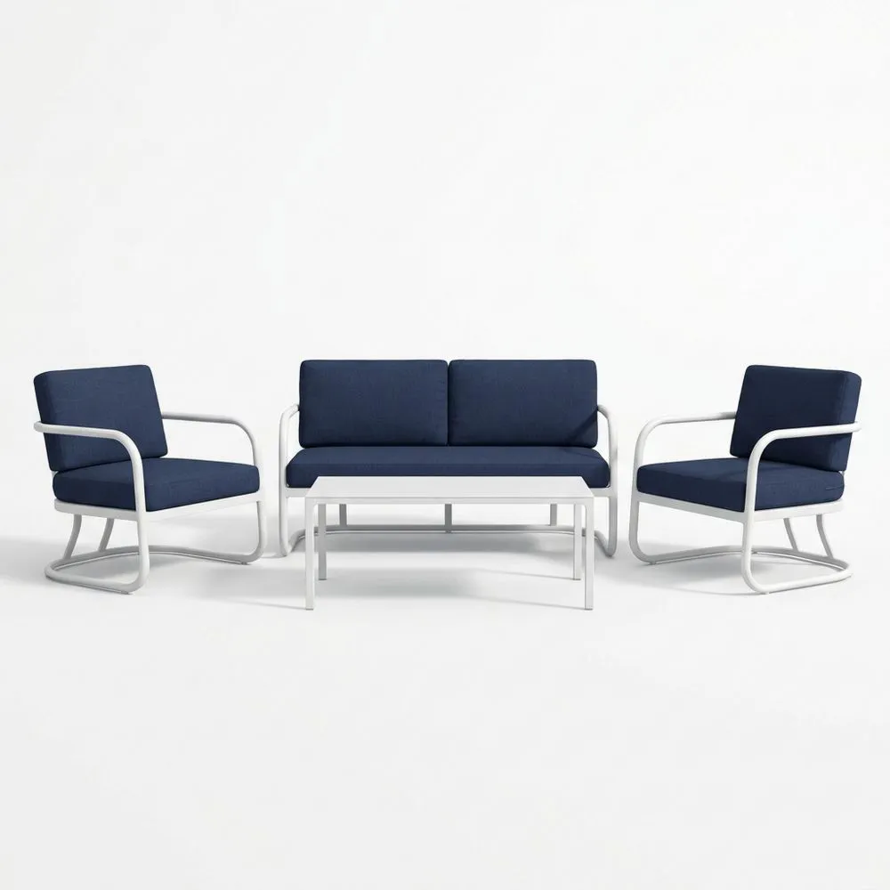 Gartenmöbel Set Aluminium Blau Polster 2-Sitzer Sofa und Sessel mit Tisch