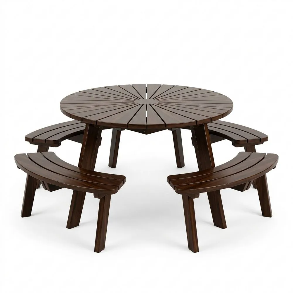 Runder Gartentisch aus Kiefernholz mit Bänken Ø180 cm Dunkelbraun